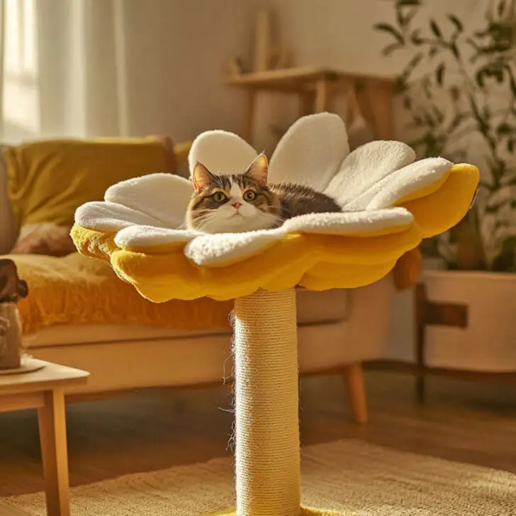 Flower shaped cat trees blend surprisingly well with many interior styles. Got a boho vibe going on? These flower-shaped cat towers can easily nestle into the aesthetic, adding to your collection of dreamcatchers and woven baskets. Picture the deep greens and warm yellows of a sunflower-themed cat bed complementing the natural tones of your space.